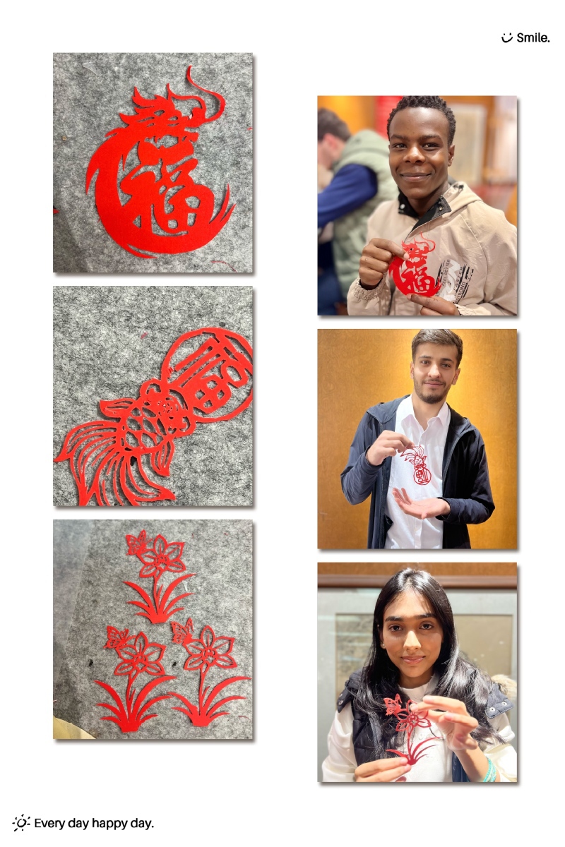 The beauty of "cut-out art" showcases the thousand-year-old intangible cultural heritage. International students hold engraving knives in their hands, looking focused. They experience traditional Chinese aesthetics within the small red paper and transform cultural understanding into practical skills with their fingertips. Lucas from Kenya is very careful when cutting the red paper. He said, "Every step requires patience. A moment of inattention can break the lines." Despite his awkward movements, he still persisted in completing a paper-cut work with the theme of the character "Fu", his face full of a sense of achievement.
